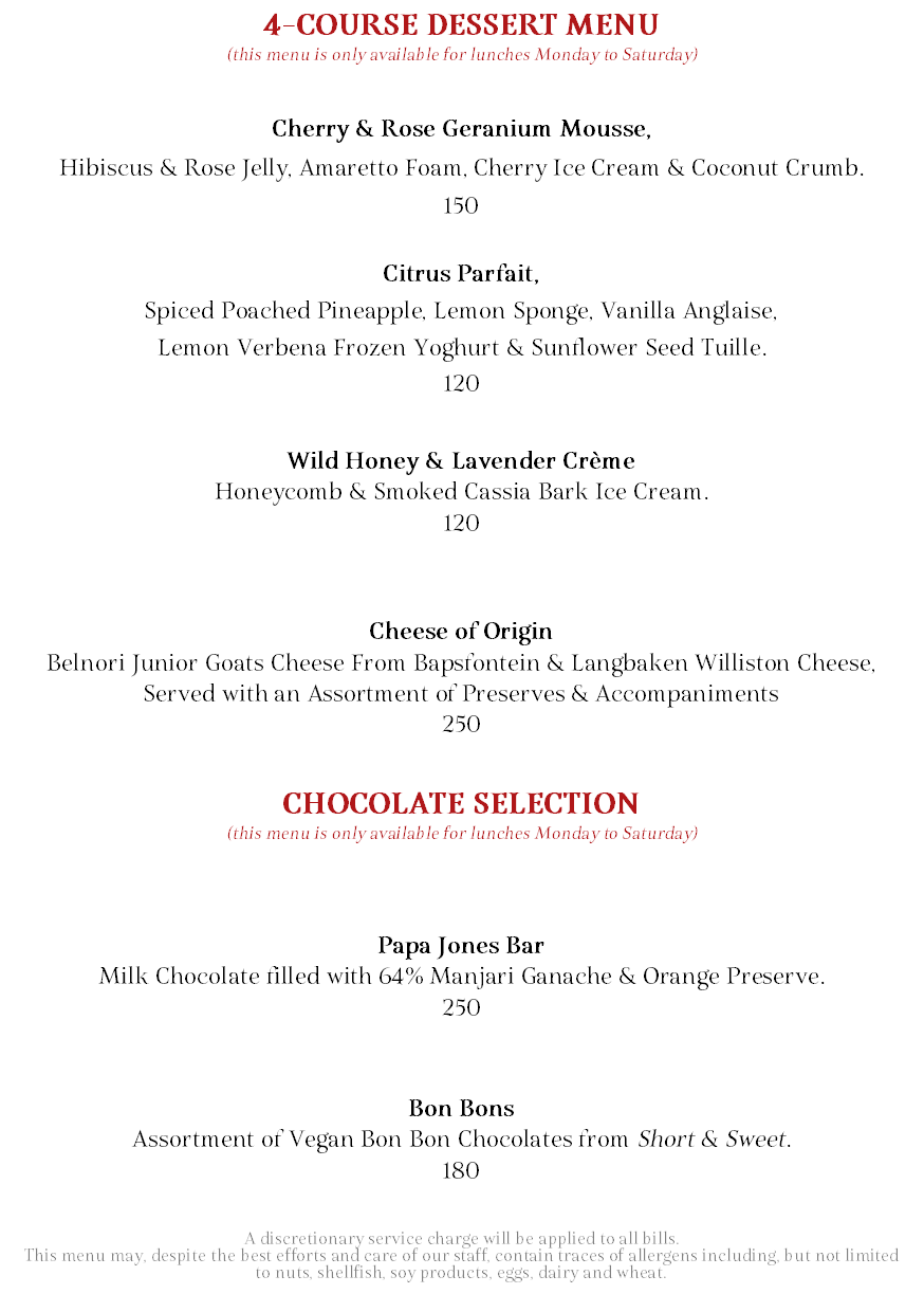 beau constantia menu
