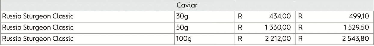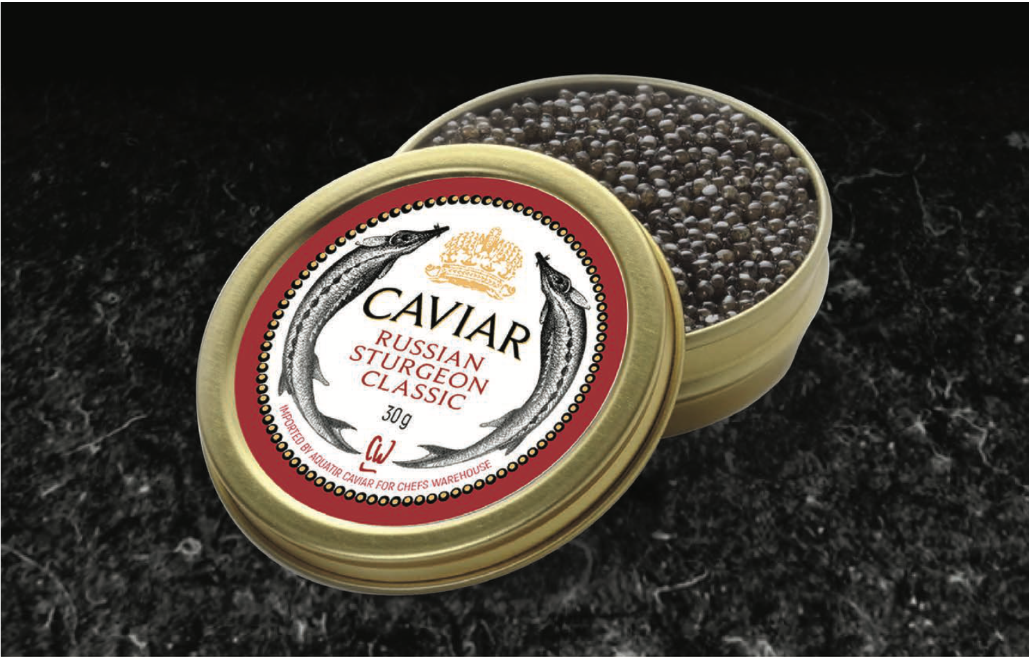 Experience world-class sturgeon caviar, sustainably sourced for exceptional quality and taste. Chefs Warehouse offers the finest Russian Sturgeon caviar, delivering superior freshness and a buttery texture. Our product is avliable in 3 sizes 30g, 50g, and 100g.
