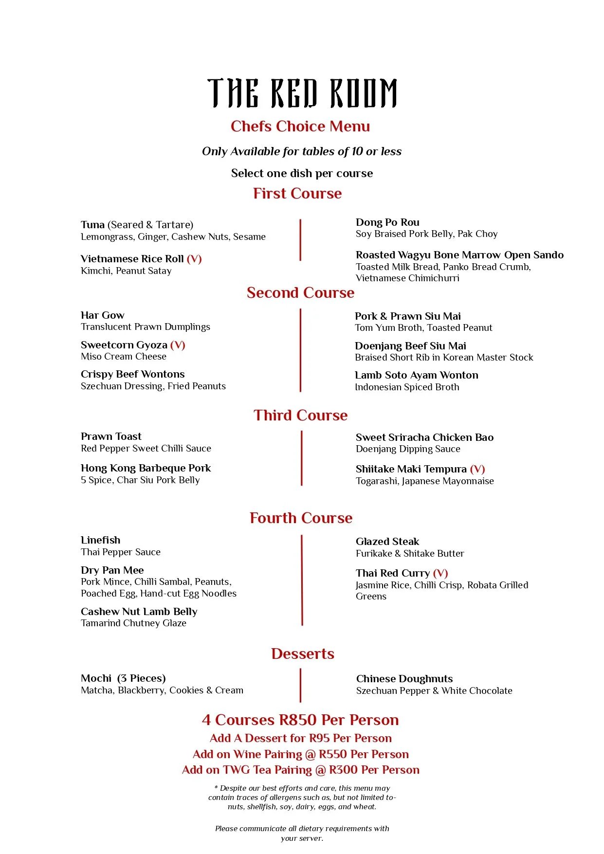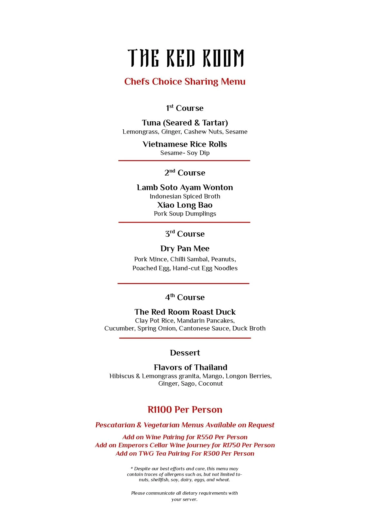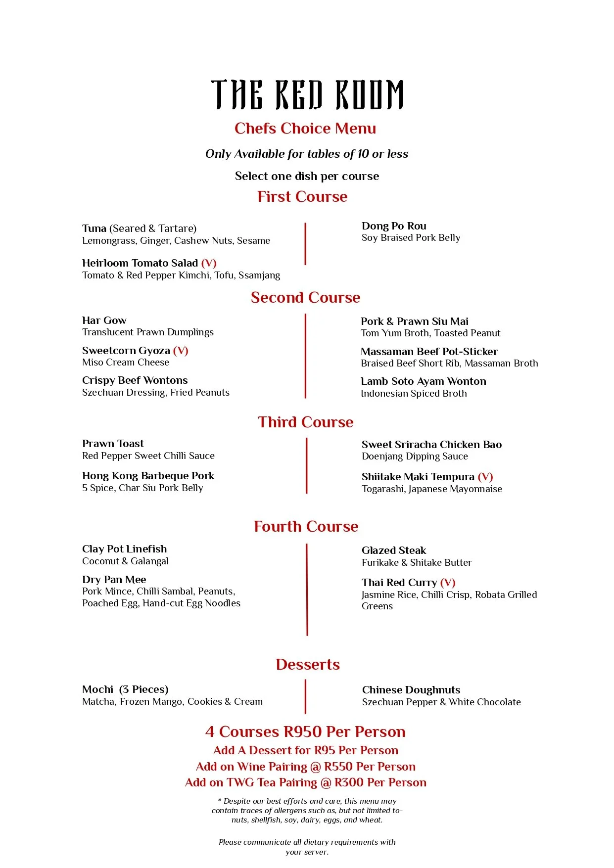 Tables of 8 persons and more will automatically be given the Chefs’ choice menu.